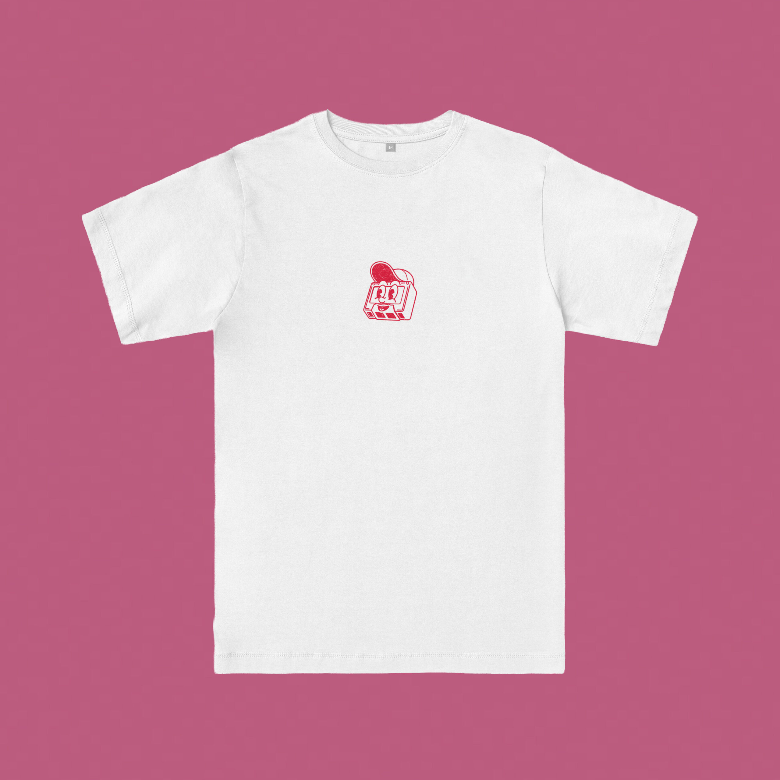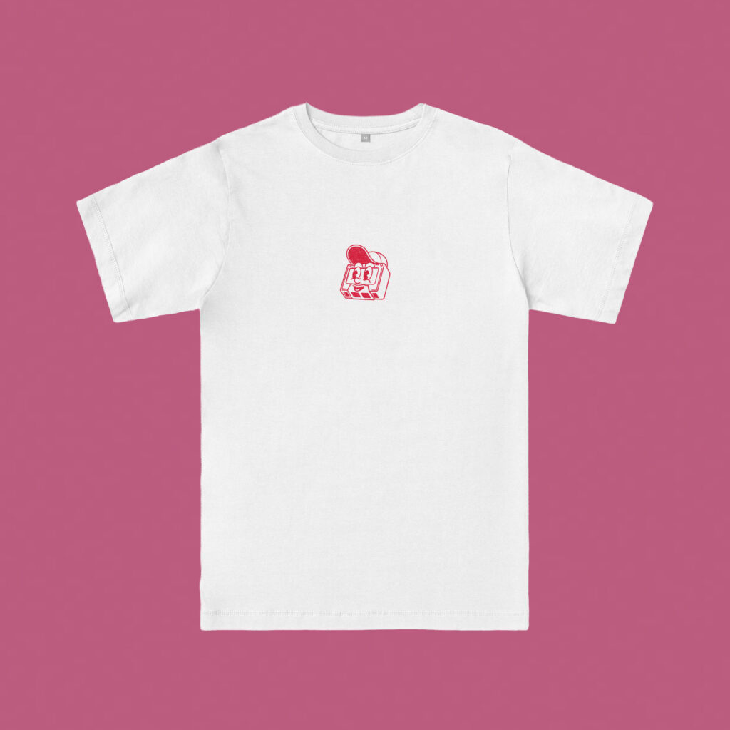 White locally screen printed Dayshift t-shirt. Shifty face logo printed on the front with the Dayshift Episode 7 island image on the back. Printed on AS Colour heavy weight t-shirt stock.